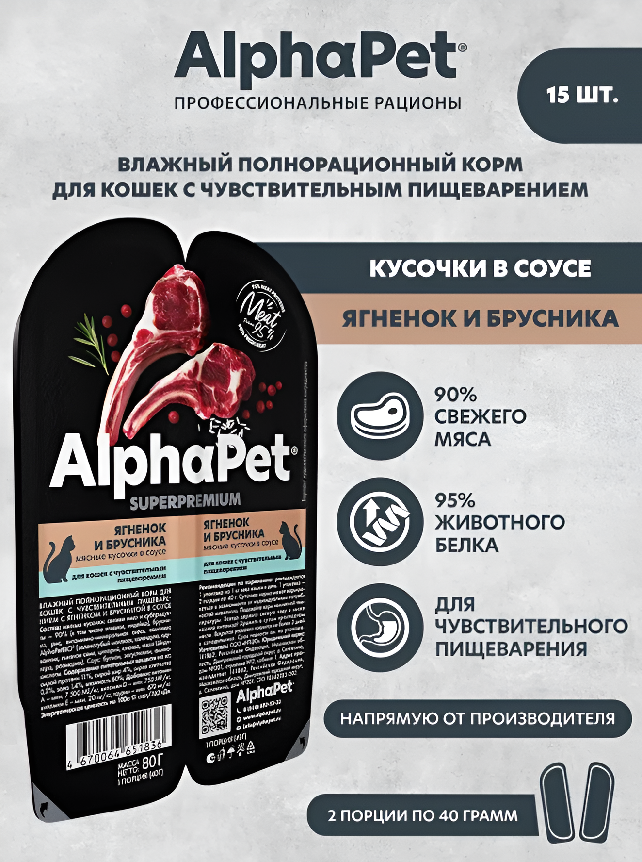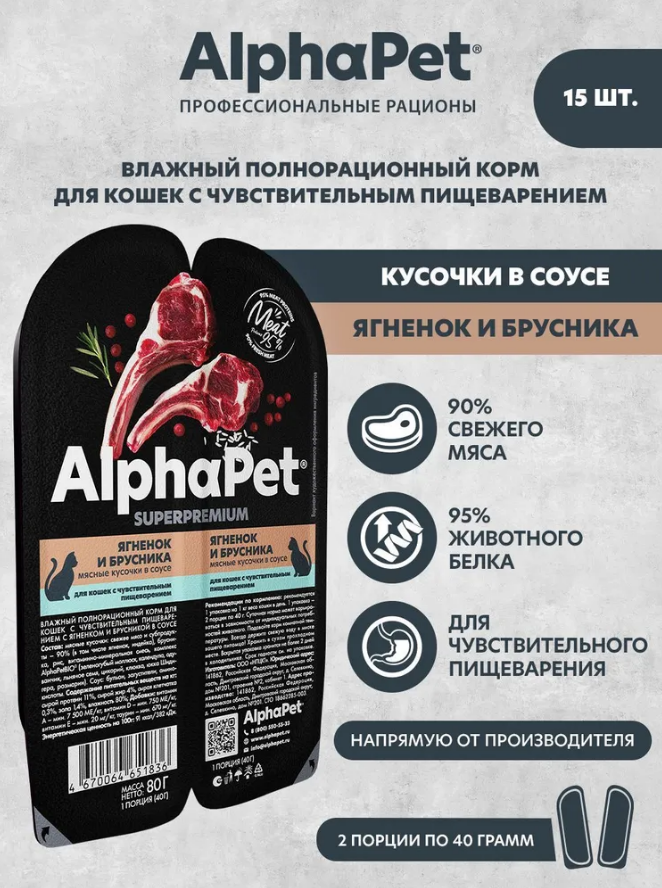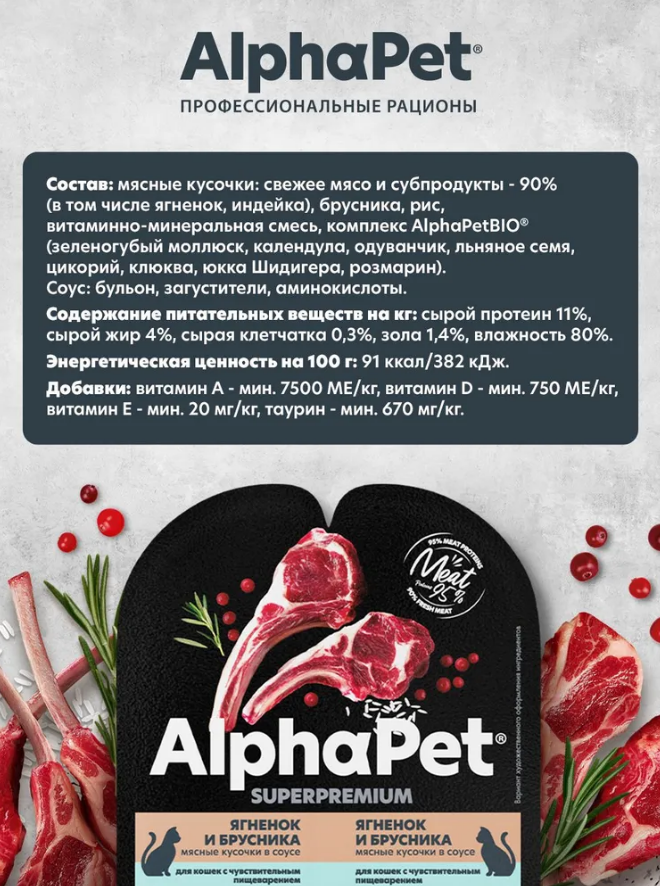 Купить ALPHAPET SUPERPREMIUM ламистер влажный корм для кошек с чувствительным пищеварением ягненок и брусника 80 гр х 15 шт с доставкой по всей России. ALPHAPET SUPERPREMIUM ламистер влажный корм для кошек с чувствительным пищеварением ягненок и брусника 80 гр х 15 шт: сравнение цен, характеристики, фото, актуальное наличие и цены.