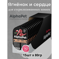 ALPHAPET SUPERPREMIUM 80 гр ламистер влажный корм для стерилизованных кошек ягненок и сердце 1х15