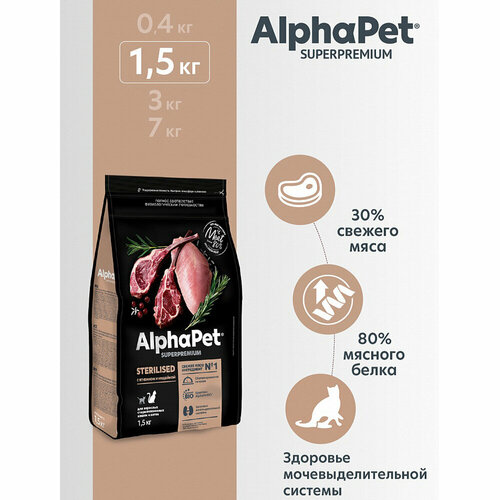 Купить AlphaPet Superpremium с ягненком и индейкой для стерилизованных кошек 1,5кг с доставкой по всей России. AlphaPet Superpremium с ягненком и индейкой для стерилизованных кошек 1,5кг: сравнение цен, характеристики, фото, актуальное наличие и цены.