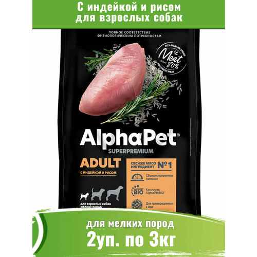 Купить Корм сухой для собак мелких пород, с индейкой и рисом AlphaPet Superpremium 2уп по 3кг с доставкой по всей России.