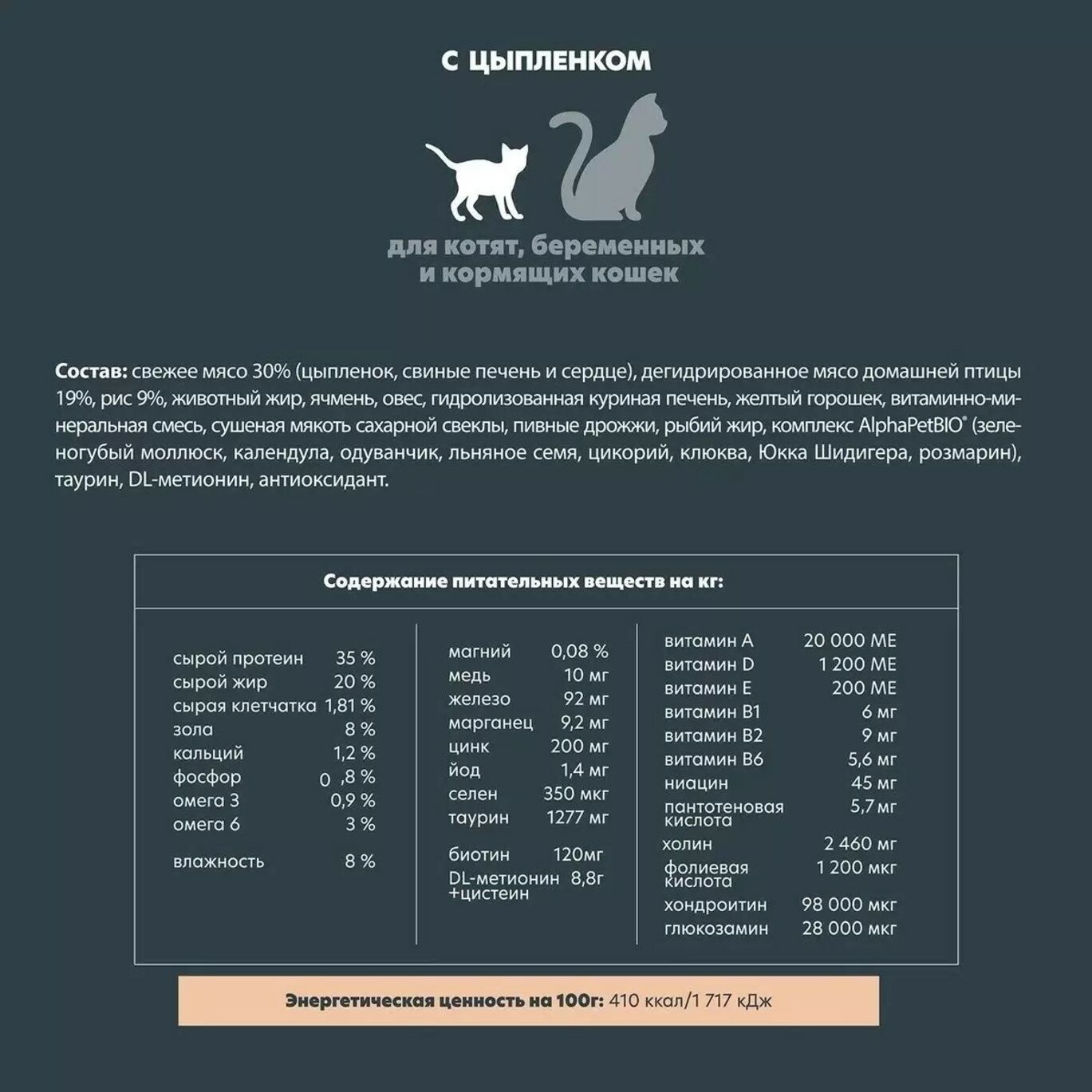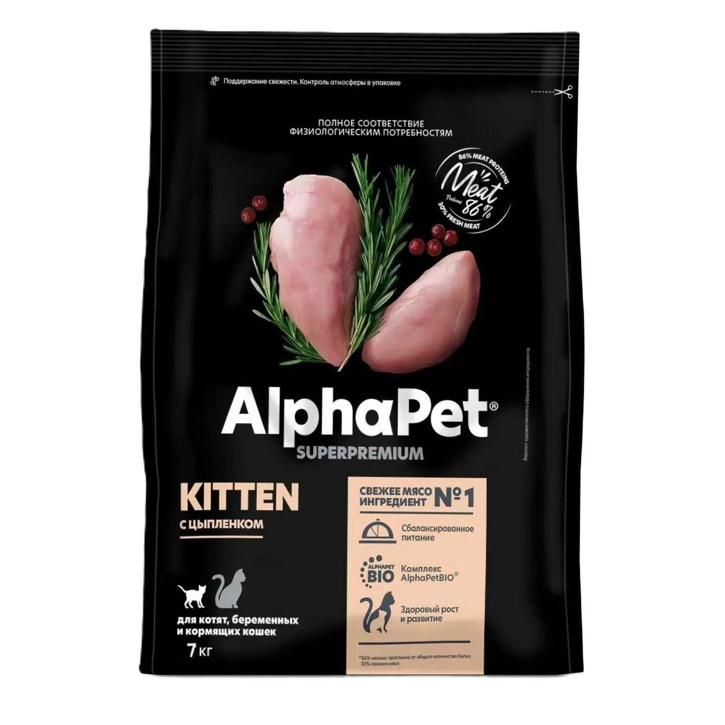 Купить AlphaPet Superpremium сухой корм для котят, беременных и кормящих кошек Цыпленок 7кг с доставкой по всей России.