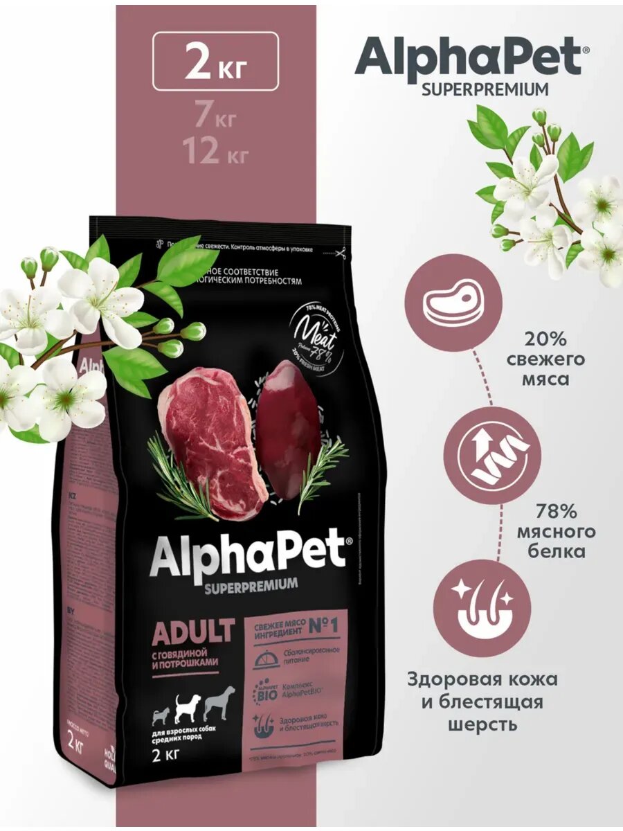 Купить Сухой корм AlphaPet (Альфапет) Superpremium для взрослых собак средних пород с говядиной и потрошками, 2 кг с доставкой по всей России. Сухой корм AlphaPet (Альфапет) Superpremium для взрослых собак средних пород с говядиной и потрошками, 2 кг: сравнение цен, характеристики, фото, актуальное наличие и цены.