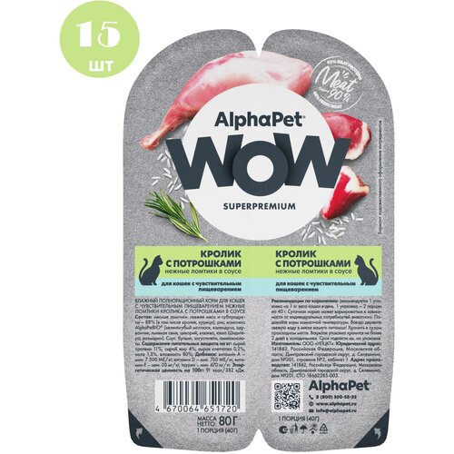 AlphaPet WOW Superpremium влажный корм для кошек с чувствительным пищеварением Кролик и потрошки, нежные ломтики в соусе