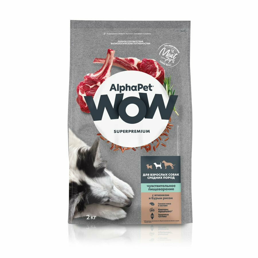 Купить AlphaPet WOW Сухой корм для собак медиум с чувствительным пищеварением с ягненком и бурым рисом 7кг с доставкой по всей России.