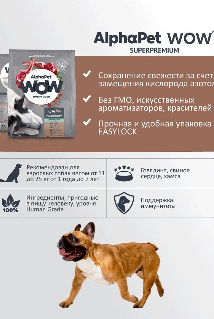 AlphaPet WOW Сухой корм для собак медиум с чувствительным пищеварением с ягненком и бурым рисом 7кг: сравнение цен, характеристики, фото, актуальное наличие и цены.