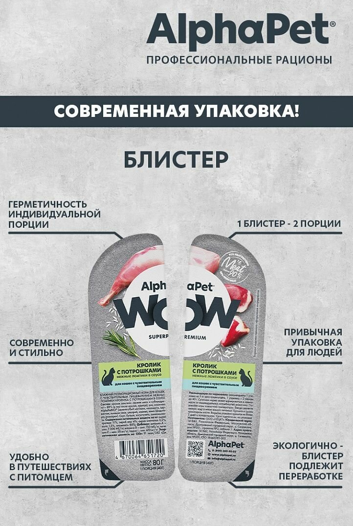 Купить Влажный корм для кошек AlphaPet WOW Кролик с потрошками ломтики в соусе, упаковка 80 гр х 15 шт с доставкой по всей России. Влажный корм для кошек AlphaPet WOW Кролик с потрошками ломтики в соусе, упаковка 80 гр х 15 шт: сравнение цен, характеристики, фото, актуальное наличие и цены.
