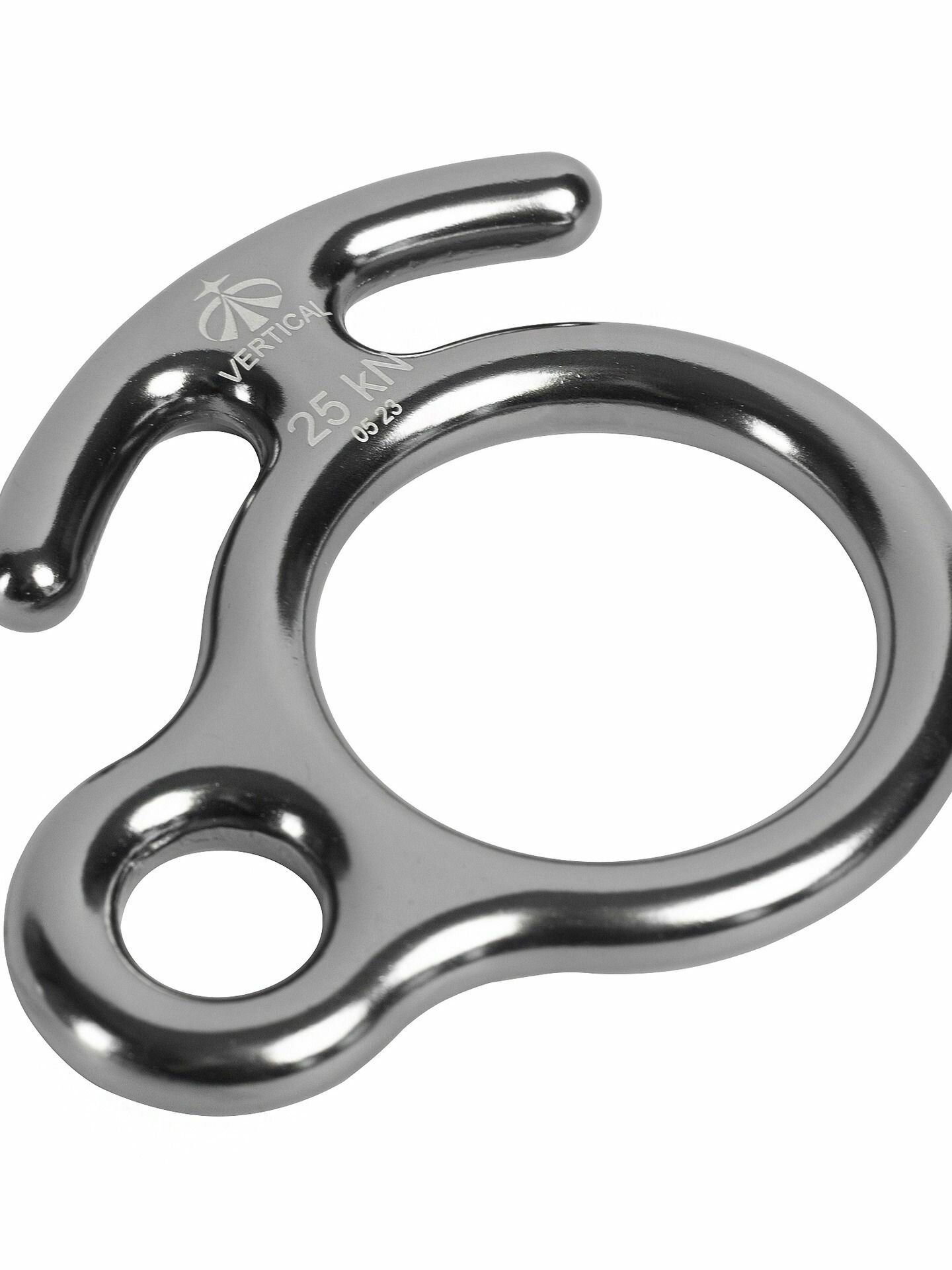 Классическое устройство в виде восьмерки, выполненное из алюминиевого сплава. Применяется для страховки и спуска по закрепленной веревке. Благодаря “рогам” есть возможность фиксации веревки в устройстве. Преимуществом восьмерки является простота использования, возможность применения веревок от 8 до 12 мм, возможность работы с двойной веревкой, неприхотливость устройства к состоянию веревки(налипший снег, лед, загрязнения).
