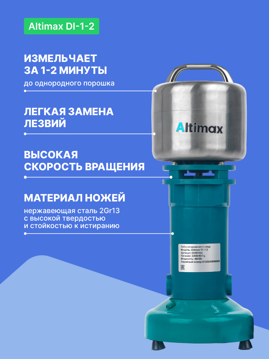 Купить Altimax DI-1-2 Мельница лабораторная, нержавеющая сталь, 0,1 л с доставкой по всей России. Altimax DI-1-2 Мельница лабораторная, нержавеющая сталь, 0,1 л: сравнение цен, характеристики, фото, актуальное наличие и цены.