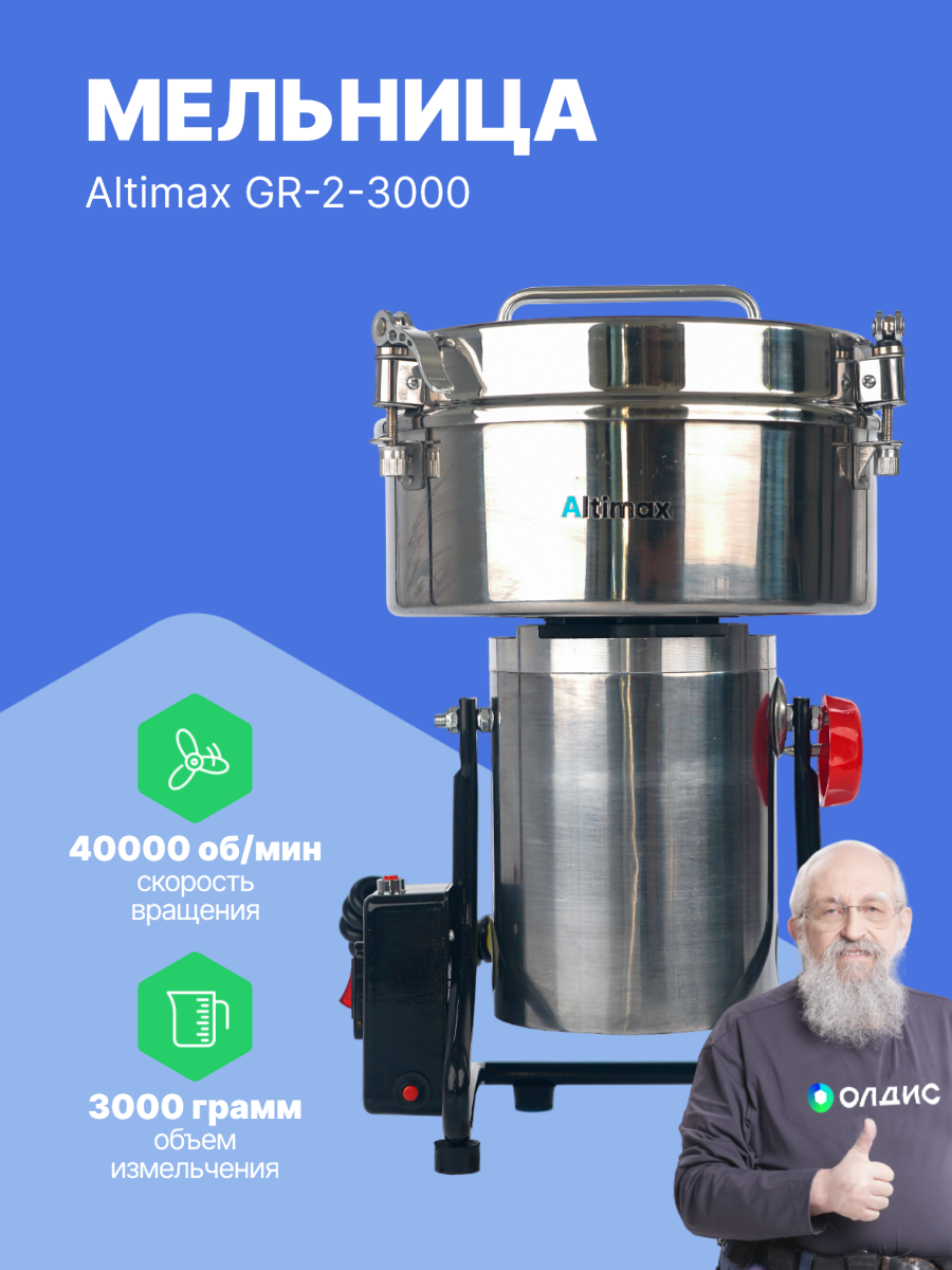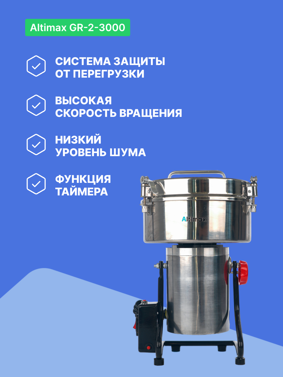 Мельница Altimax GR-2-3000 включают в себя мощный двигатель, способный обеспечить высокую скорость вращения ротора, что позволяет быстро и эффективно измельчать материалы различной твердости.