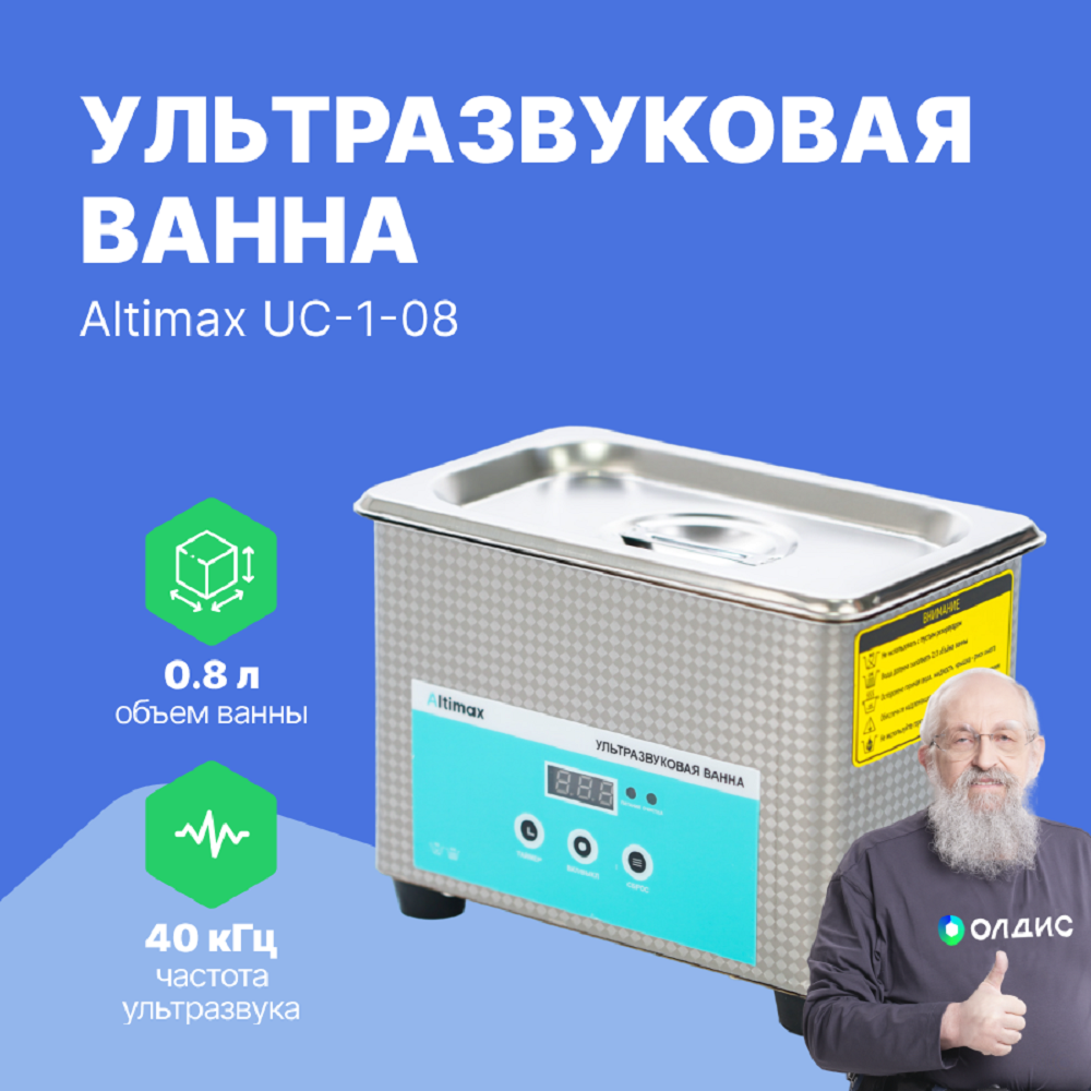 Ультразвуковая ванна Altimax UC-1-08 с таймером 0,8 л. 35 Вт, 40khz, для очистки мелких деталей: сравнение цен, характеристики, фото, актуальное наличие и цены.