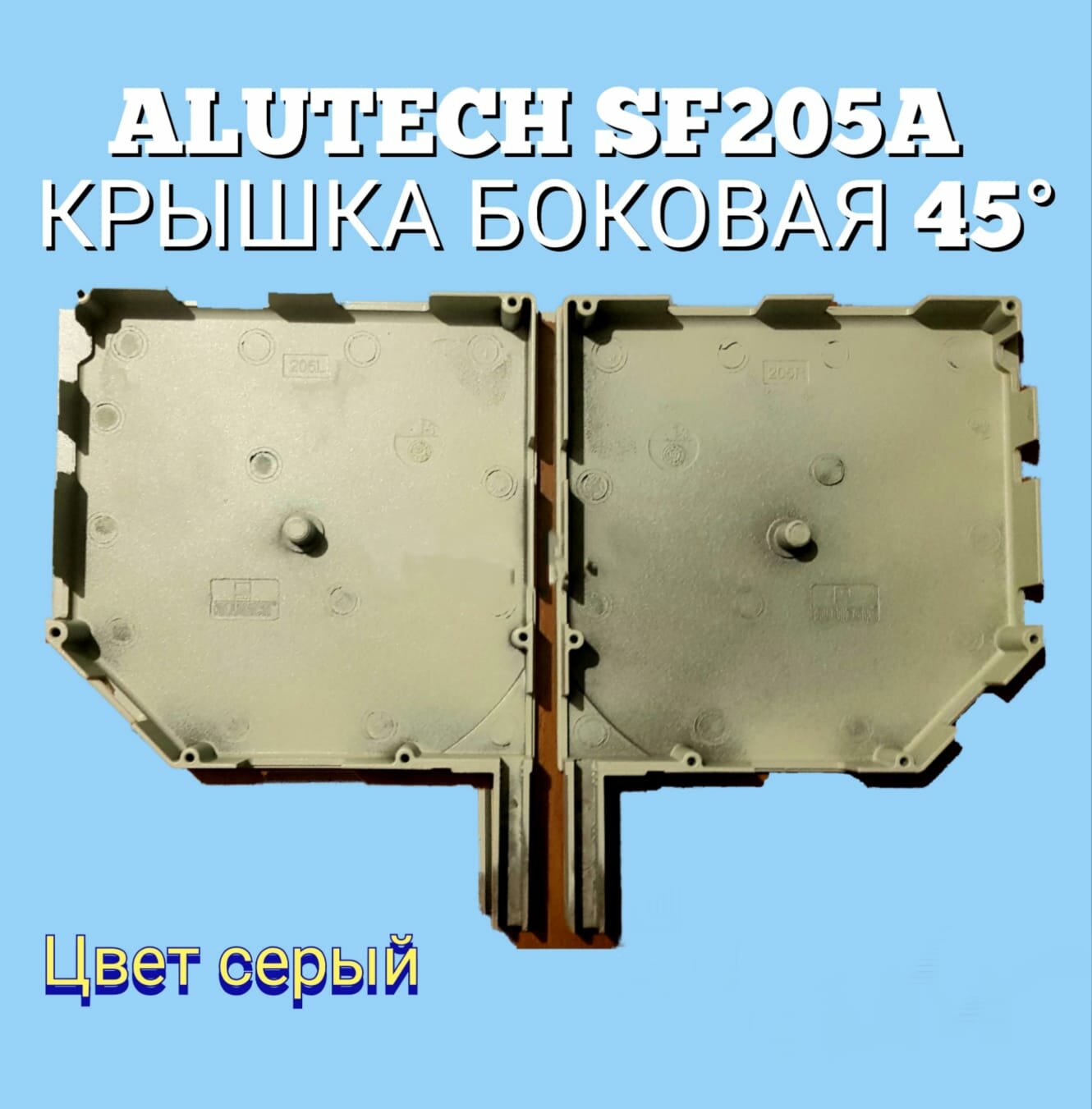 ALUTECH SF205a : Крышка боковая 45° Для защитных коробов серии SB45. Aлюминиевая. Крышка боковая ALUTECH SF205a предназначена для комплектации рольставней серии SF. Изделие поставляется в комплекте из двух штук (пара). Выполнена из прочного и долговечного алюминиевого сплава. Модель имеет эстетичный серый цвет, подходящий для большинства фасадов. Установка боковых крышек обеспечивает завершенный внешний вид и дополнительную защиту механизма. Применяется совместно с направляющими шинами GR53×22/eco, GR60×21/S, GR60×21/SE, GR65×24E, GR65×24/eco, GRM65×26, GR45×22E, GR45×34E, GR45×60E, GR53×22E, GR53×34E, GR53×39E, GR53×42E, GR53×60E, GRM66×27E