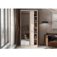 Шкаф-купе Семья Мебелони "Тео ШКК-02" с зеркалом, Крафт/Белый, ЛДСП