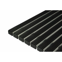 Алюминиевые решетки "Сити"резина относятся к премиальному сегменту товаров для грязезащиты. Алюминиевые грязезащитные решетки "Сити" отличаются стойкостью к коррозии, температурным перепадам от -40 до +70 °С. -Безопасно для проезда техники, колясок. -Рекомендовано для зон с раздвижными дверями. -Разрешено в местах с вращающимися дверями. -Рекомендовано для установки вне помещения. -Изделие трудновоспламеняемое. -материал каркаса: алюминиевый сплав -тип профиля: замкнутый профиль -толщина стенки профиля: переменная толщина стенки 1,3 мм, основание профиля 2,9 мм -высота профиля: 18 мм -ширина профиля: 30,2 мм -общая высота изделия с учетом чистящих вставок: 25 мм -амортизирующие элементы : двойная резиновая вставка на основании профиля -торцевые заглушки: ударопрочный пластик -типы чистящих элементов: щетка полиамидная "резина" -тип соединения профилей: стальной нержавеющий трос-толщина соединительного троса: 1,8 мм -базовые расстояния между соседними тросами : не более 270 мм