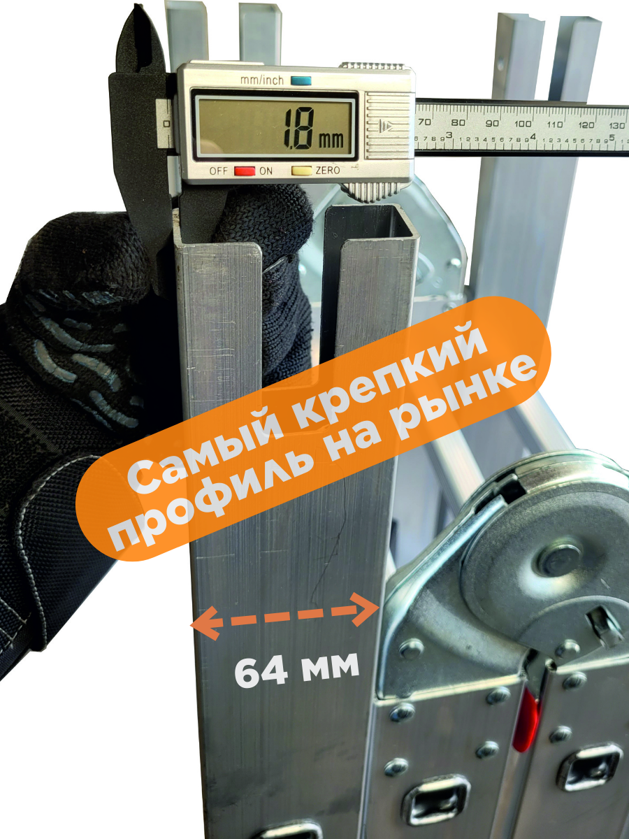 Алюминиевая лестница трансформер 4 секции по 4 ступени. Усиленная серия лестниц Комбат. Раскладывается в положениях лестницы, помоста, стремянки и т. д.