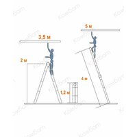 - Максимальная высота в положении стремянки 2 м, рабочая высота до 3,5 м