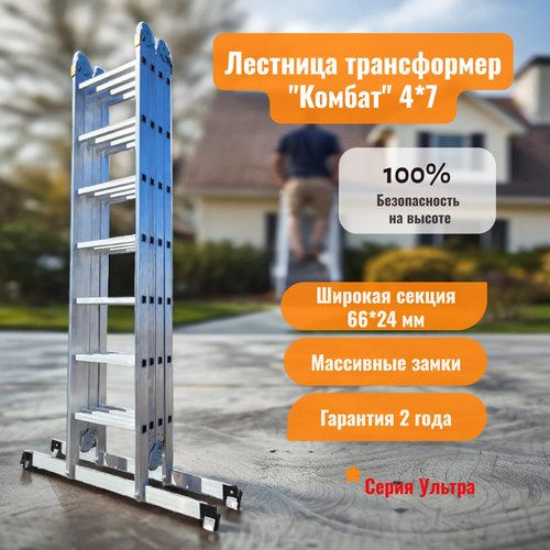 Купить Алюминиевая лестница трансформер 4х7 (7,5 м) профессиональная Комбат Ультра с доставкой по всей России. Алюминиевая лестница трансформер 4х7 (7,5 м) профессиональная Комбат Ультра: сравнение цен, характеристики, фото, актуальное наличие и цены.
