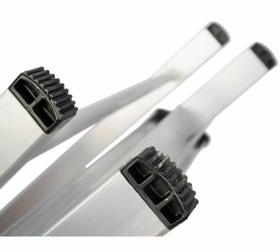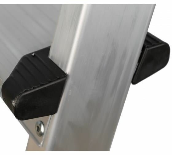 - Алюминиевая конструкция делает стремянку легкой и прочной, ее можно эксплуатировать внутри помещений и на улице, так как она не подвержена коррозии.