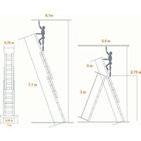 - Макс. длина лестницы в прямом положении 7,1 м, рабочая высота до 8,1 м