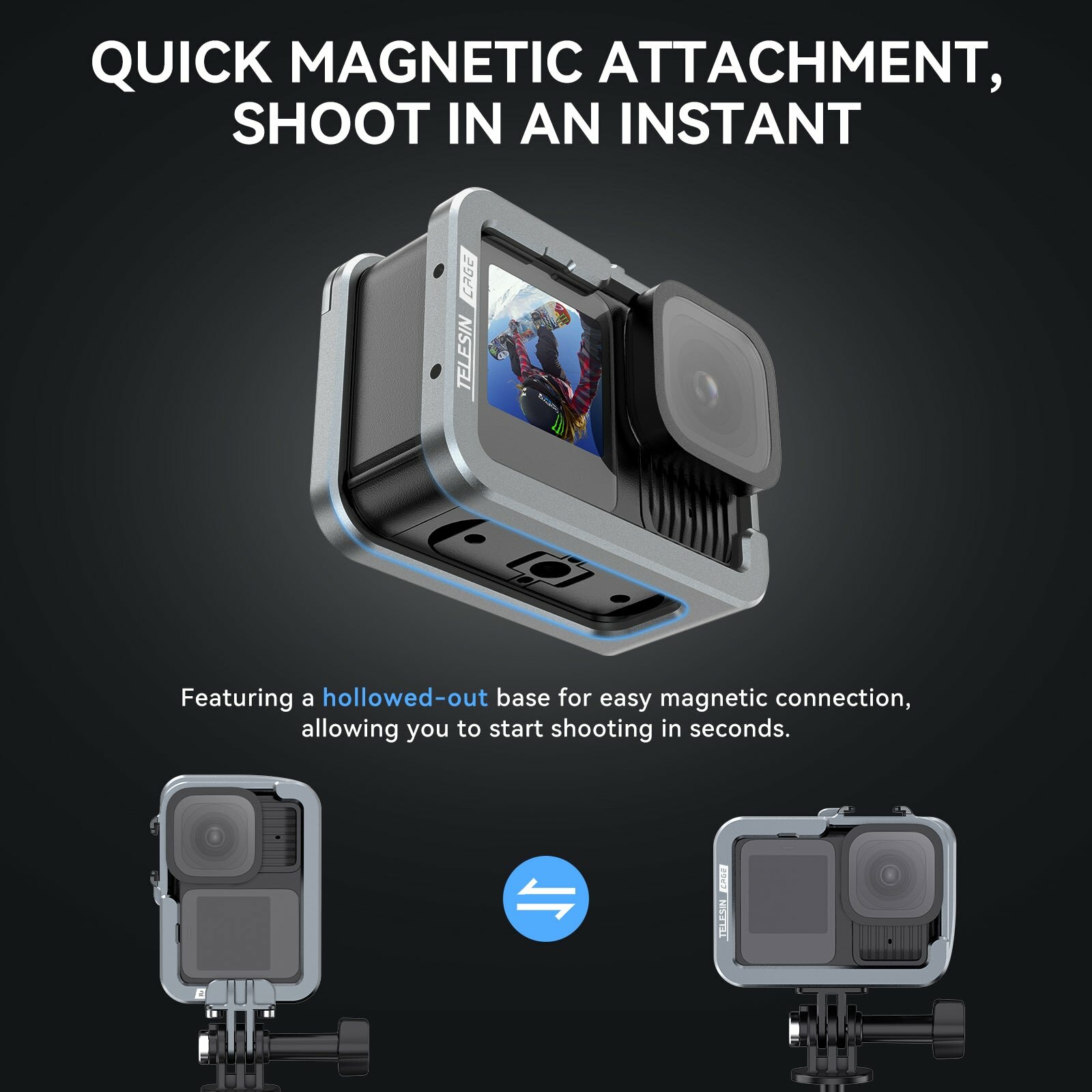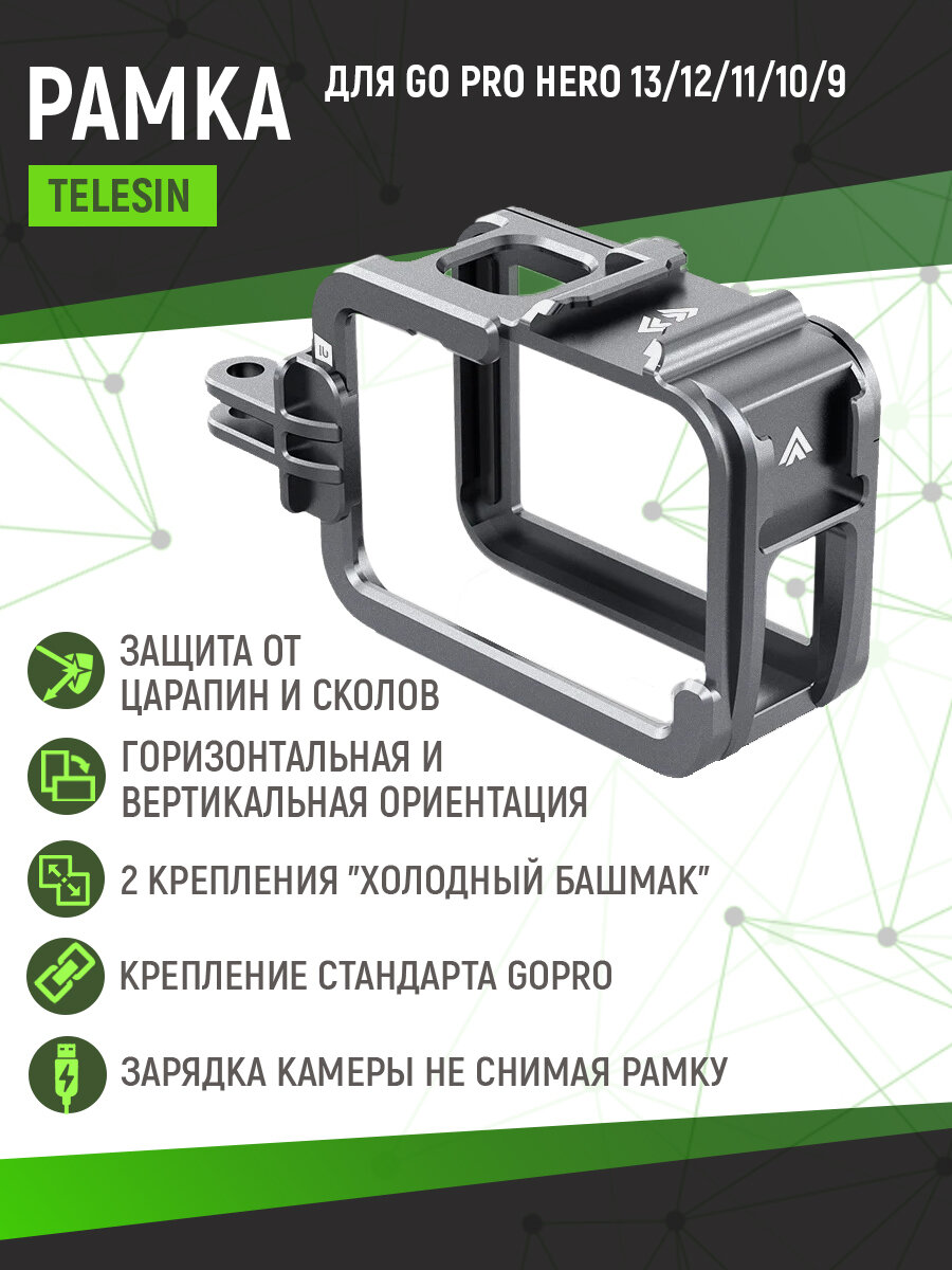 Вертикальня/горизонтальная рамка Telesin для GoPro HERO9/10/11/12/13, алюминиевая, S6-FMS-14-TGP: сравнение цен, характеристики, фото, актуальное наличие и цены.
