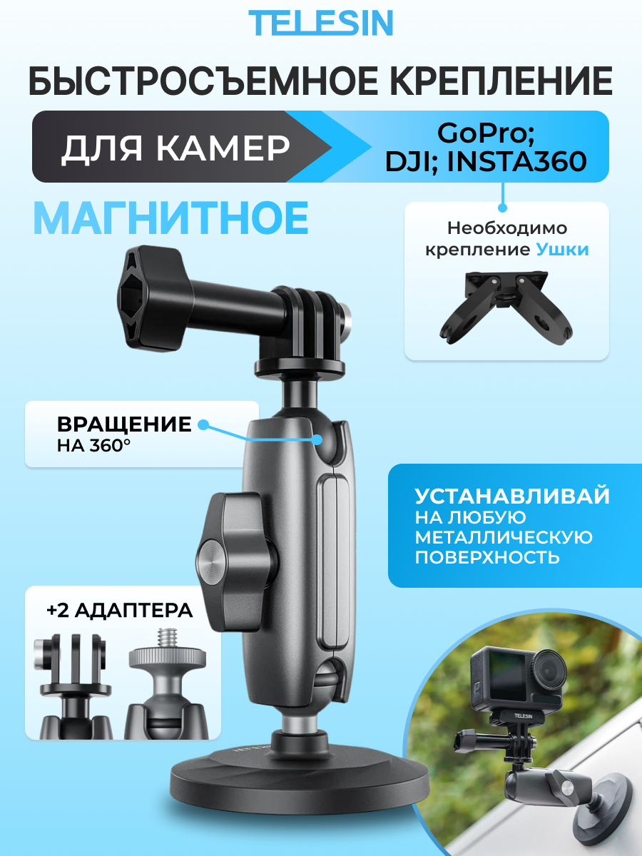 Telesin Magnetic Camera Mount CMM-001 – это идеальный выбор для профессионалов и любителей, стремящихся к универсальности, надежности и качеству съемки в любых условиях. От спортивных мероприятий до городской фотографии – это крепление гарантирует стабильность и качество ваших снимков.