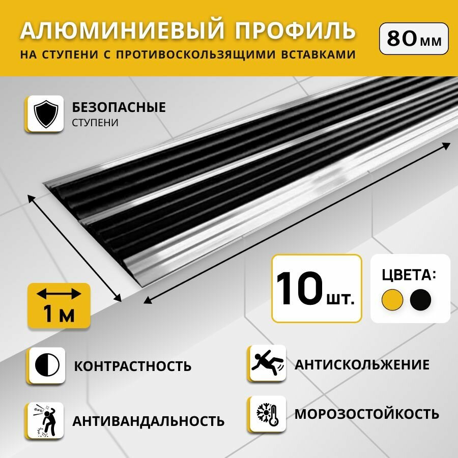Алюминиевый двойной профиль РЕТАЙЛ СТЕП, на ступени, 80 мм, длина 1 м, комплект 10 шт, черный: сравнение цен, характеристики, фото, актуальное наличие и цены.