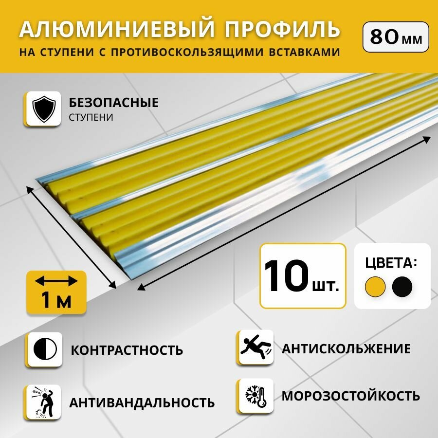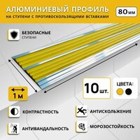 Алюминиевый двойной профиль РЕТАЙЛ СТЕП, на ступени, 80 мм, длина 1 м, комплект 10 шт, желтый: сравнение цен, характеристики, фото, актуальное наличие и цены.
