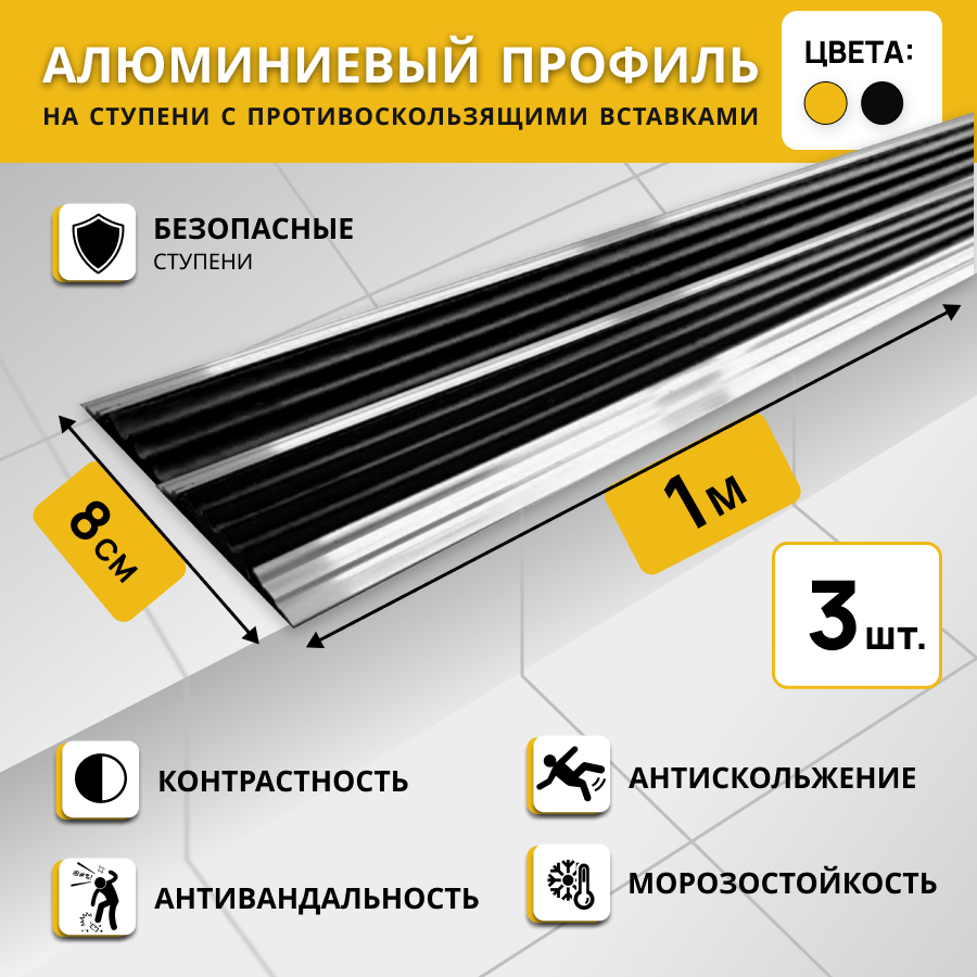 Алюминиевый двойной профиль РЕТАЙЛ СТЕП, на ступени, 80 мм, длина 1 м, комплект 3 шт, черный: сравнение цен, характеристики, фото, актуальное наличие и цены.