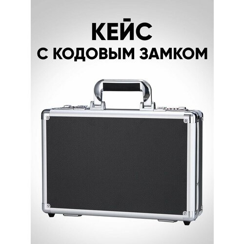Чемодан - кейс для оборудования, материалов наличных денег и документов. Вместительный легкий кейс сейф с кодовым замком, в котором безопасно хранить личные ценные вещи. Размер 40х30х15 см. Материал: пластик/алюминий. Цвет: серебро(хром)/чёрный. Закрывается на 2 застежки, без замка с ключом. Имеется внутренний карман.