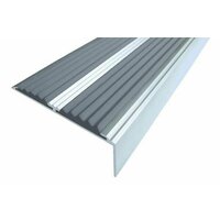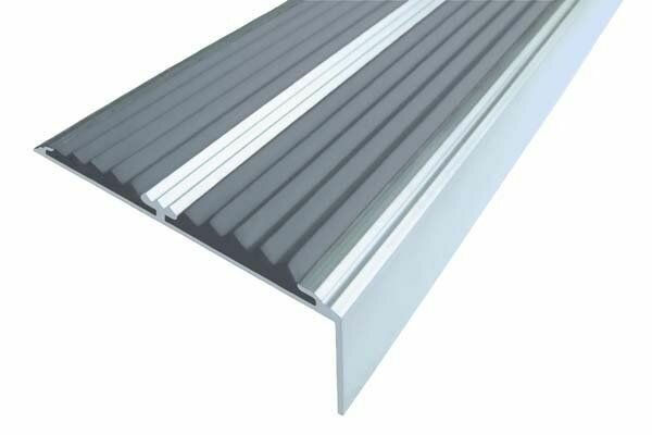 Купить Алюминиевый накладной уголок противоскользящий с двумя вставками 70 мм, 2 метра, серый, накладка на ступени с доставкой по всей России.
