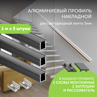 Алюминиевый профиль для светодиодной ленты накладной 1 метр по 3 шт 8х9х1000 Черный: сравнение цен, характеристики, фото, актуальное наличие и цены.