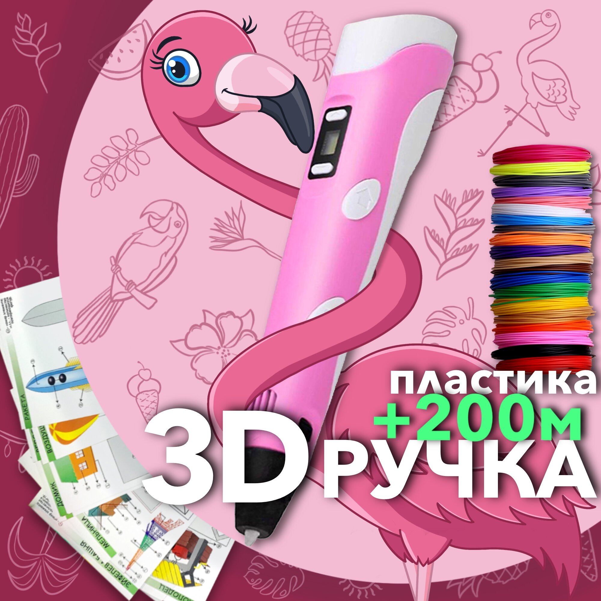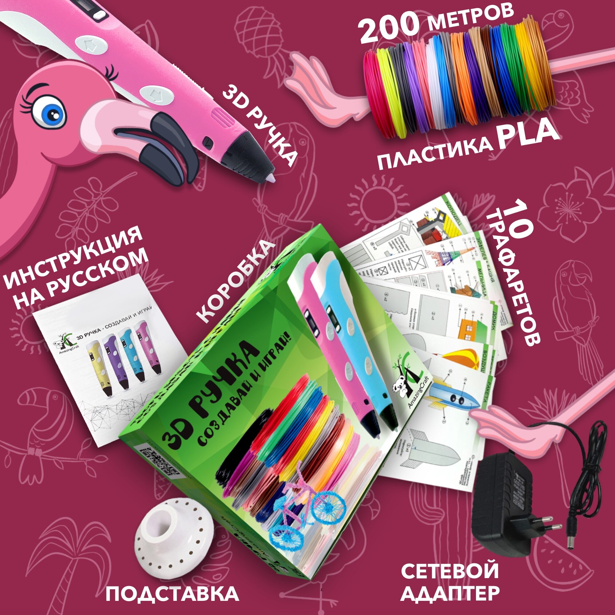 AmazingCraft Набор для детского творчества 3D ручка розовая и 20 рулонов PLA пластика по 10 метров, 10 трафаретов для 3Д ручка в комплекте, на подарок: сравнение цен, характеристики, фото, актуальное наличие и цены.