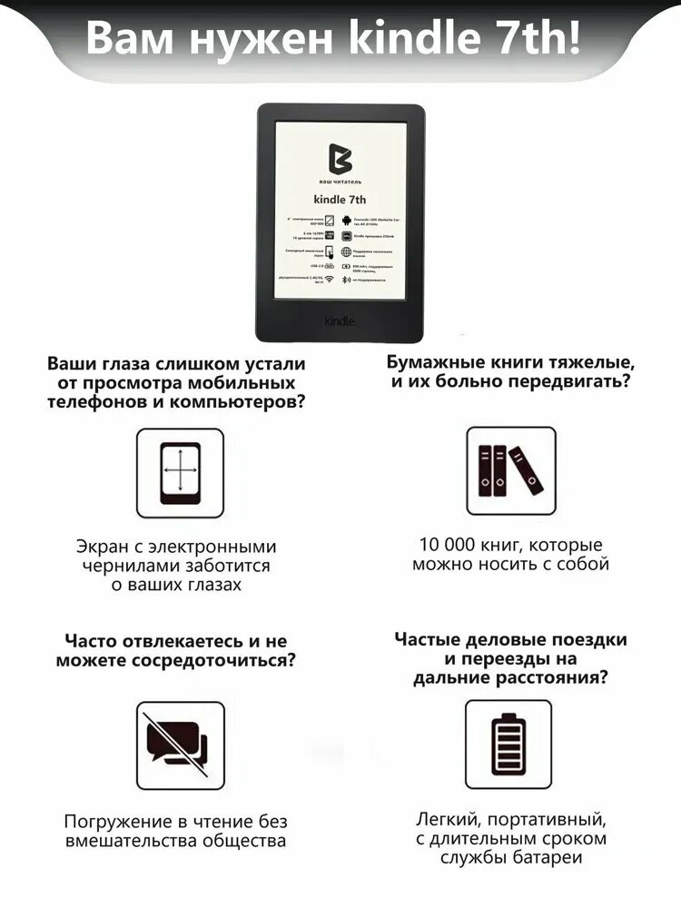 Поддерживается formats: KFX. AZW. AZW3. AZW4. MOBI. POBI. PRC. PDF. TXT (Опыт чтения большого формата PDF непосредственно в Kindle оставляет желать лучшего, вы можете читать его через горизонтальный экран. При чтении в формате TXT в Kindle могут отсутствовать слова. Рекомендуется использовать Calibre для преобразования формата перед чтением.)