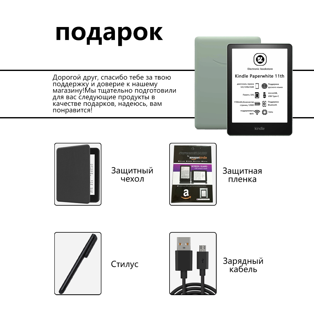 Купить Электронная книга Amazon Kindle Paperwhite 11-го поколения, E-ink, 6,8 дюйма, 16 ГБ, Wi-Fi, подсветка, Jade Cyan, 300PPI с доставкой по всей России.