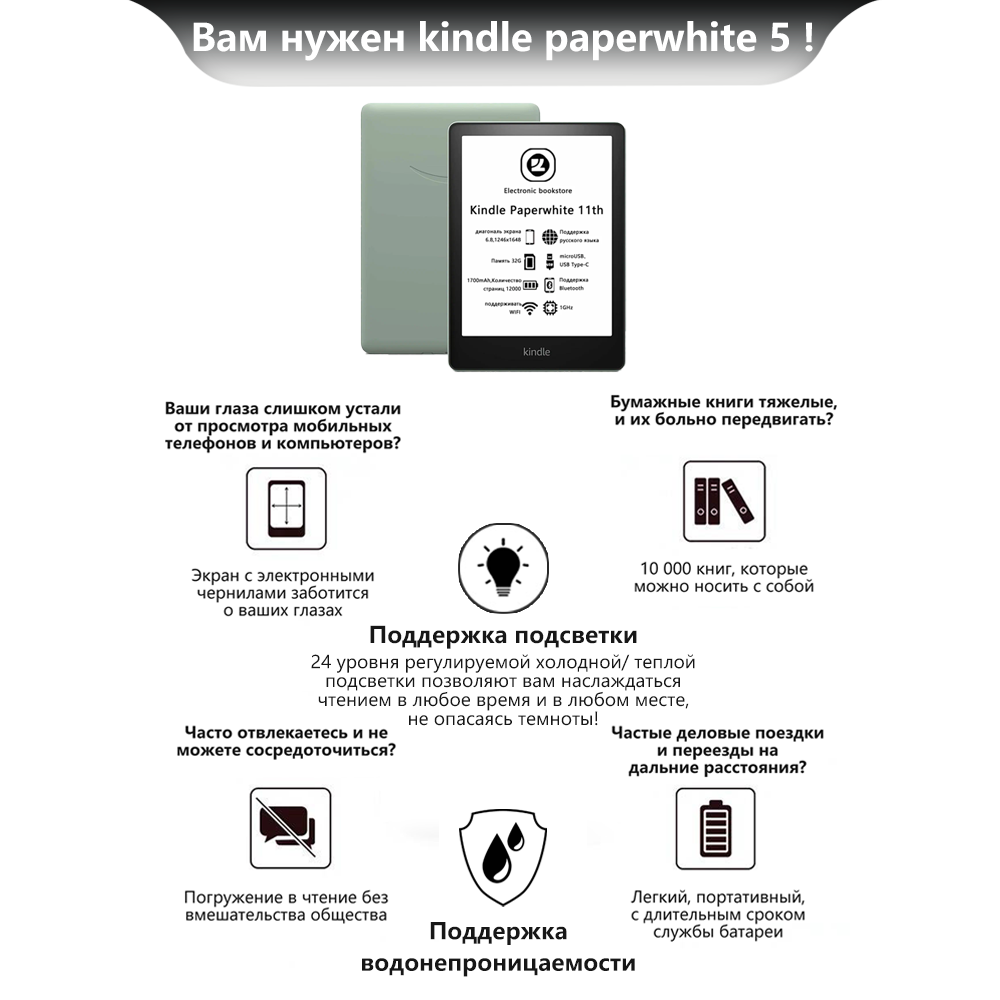 Электронная книга Amazon Kindle Paperwhite 11-го поколения, E-ink, 6,8 дюйма, 16 ГБ, Wi-Fi, подсветка, Jade Cyan, 300PPI: сравнение цен, характеристики, фото, актуальное наличие и цены.