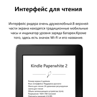 Kindle paperwhite2 имеет 4 подсветки, разрешение 212 PPI, 256 МБ оперативной памяти и 2 ГБ дискового пространства (его собственная система займет небольшую часть памяти).