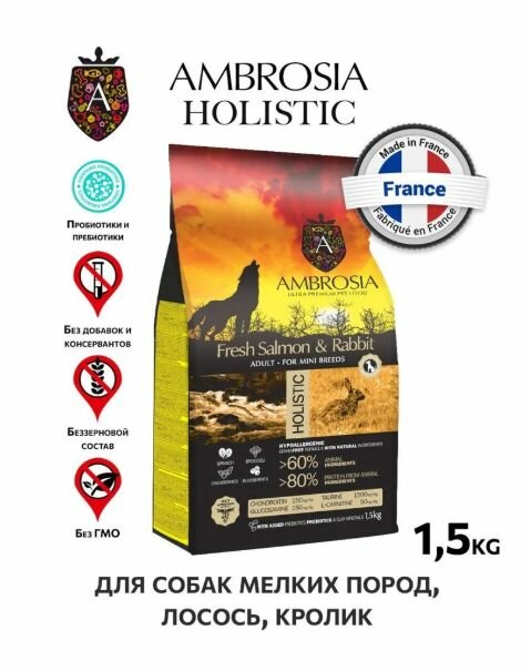 Купить Ambrosia Adult Mini Breeds (Лосось, кролик) для собак мелких пород, 1,5 кг с доставкой по всей России.