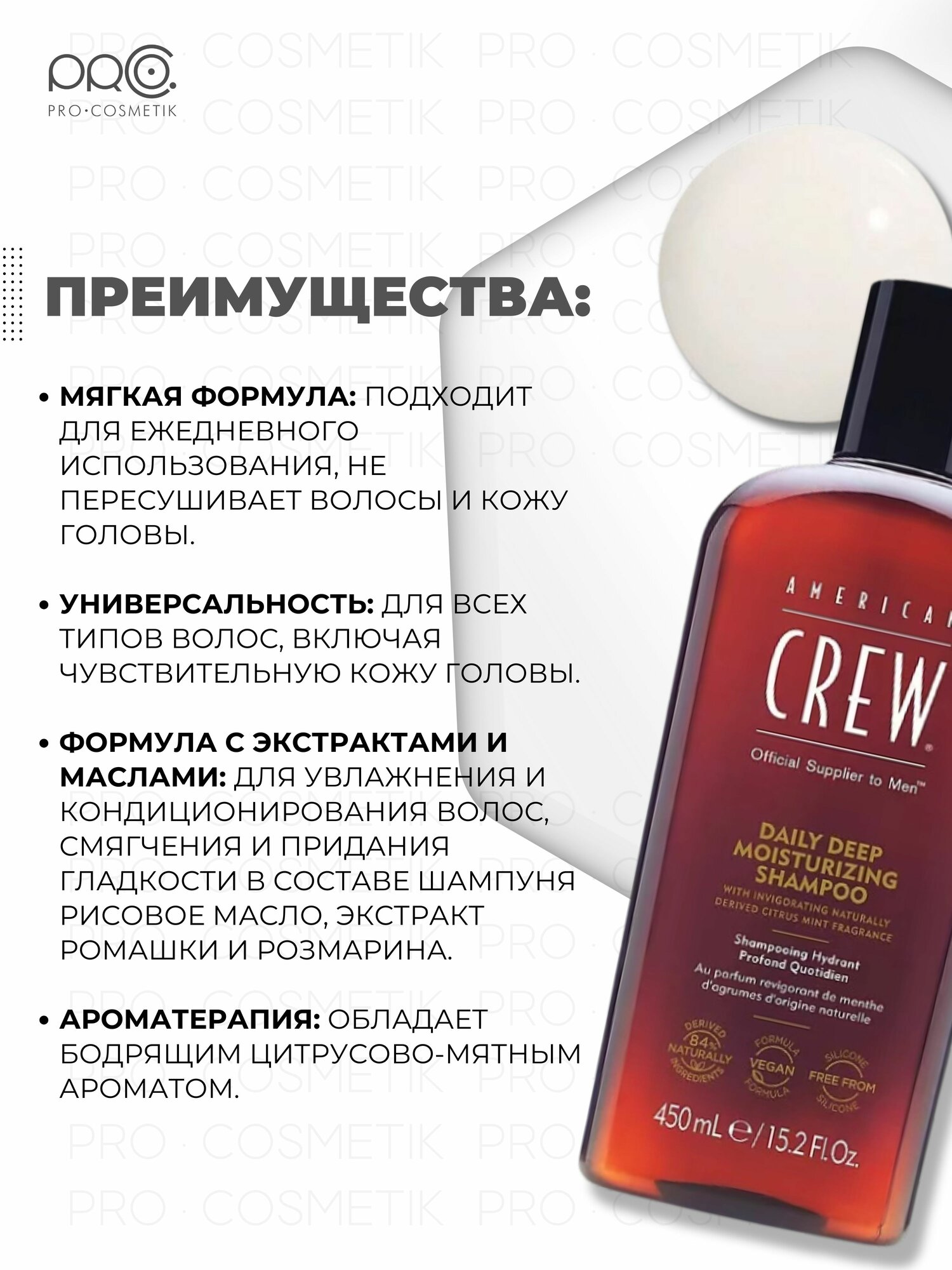 Купить American Crew Daily Deep Moisturizing Shampoo — Шампунь увлажняющий 450 мл с доставкой по всей России.