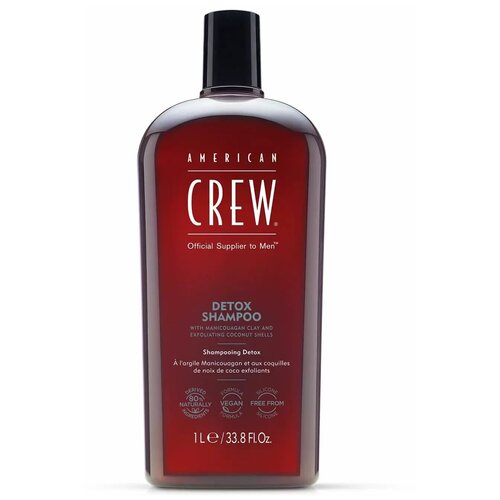Шампунь для волос Detox Shampoo американской марки American Crew входит в состав фирменной мужской серии косметических продуктов по уходу за телом. Он предназначен для очищения и улучшения состояния прядей, склонных к жирности. Средство хорошо пенится, тщательно удаляет себум, ороговевшие клетки, остатки укладки, бережно отшелушивает эпидермис, благодаря измельчённой кокосовой скорлупе, стимулирует микроциркуляцию крови, проводит деликатный массаж.