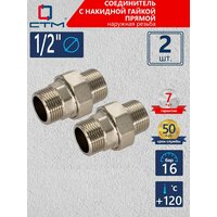 Соединитель с накидной гайкой прямой 1/2" ш/ш CTM предназначается для соединения частей трубопровода. Соединение осуществляется с помощью накидной гайки и тип такого соединения называют «американка».