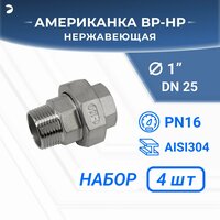 Американка наружная внутренняя нр/вр нержавеющая, AISI304 DN25 (1″) дюйм, (CF8), PTFE, PN16, набор 4 шт: сравнение цен, характеристики, фото, актуальное наличие и цены.