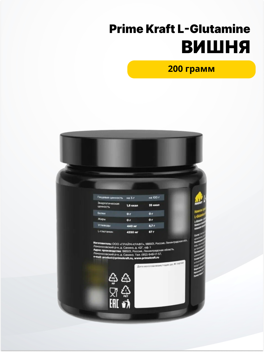 Купить Аминокислота глютамин Prime-Kraft L-Glutamine, 200 г, вкус: вишня с доставкой по всей России. Аминокислота глютамин Prime-Kraft L-Glutamine, 200 г, вкус: вишня: сравнение цен, характеристики, фото, актуальное наличие и цены.