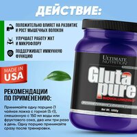 Glutapure® был специально разработан для Ultimate Nutrition при использовании запатентованной современной научной технологии Fermapure™. Производимый при этом микроизмельченный L-глютамин обладает высоким качеством, отвечающим стандартам FCC, USP, а также Фармацевтическим стандартам и нормам.