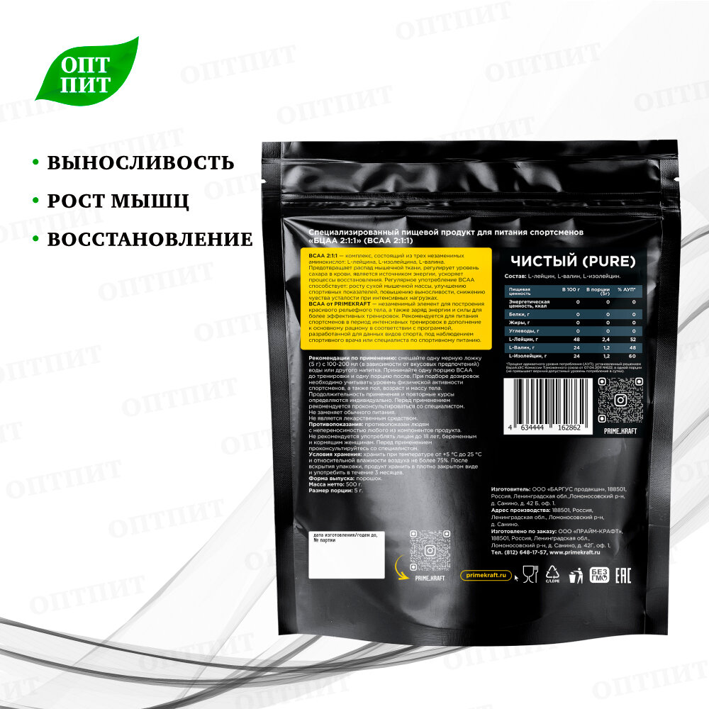 Аминокислоты PRIMEKRAFT BCAA 2:1:1 (БЦАА) Чистый, без вкуса (pure), 500 г /100 порций: сравнение цен, характеристики, фото, актуальное наличие и цены.