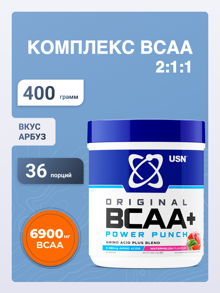 Купить USN Аминокислоты BCAA+ Power Punch 400 г, Арбуз с доставкой по всей России.
