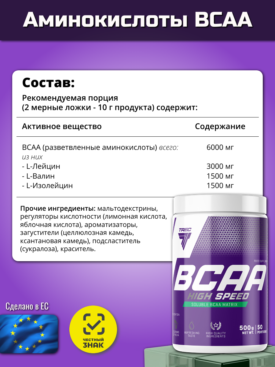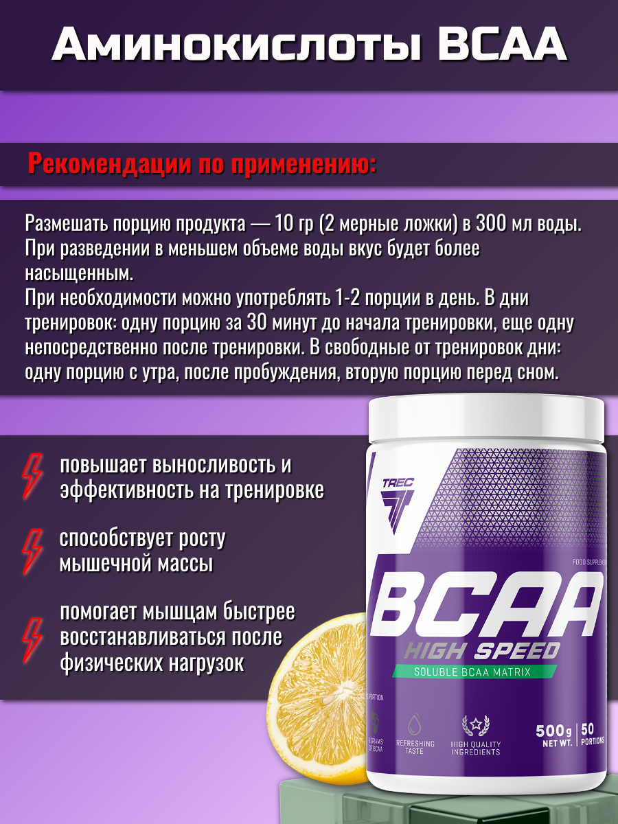 Аминокислоты BCAA 2:1:1 Trec Nutrition BCAA High Speed, 500 г, вкус «Лимон»: сравнение цен, характеристики, фото, актуальное наличие и цены.