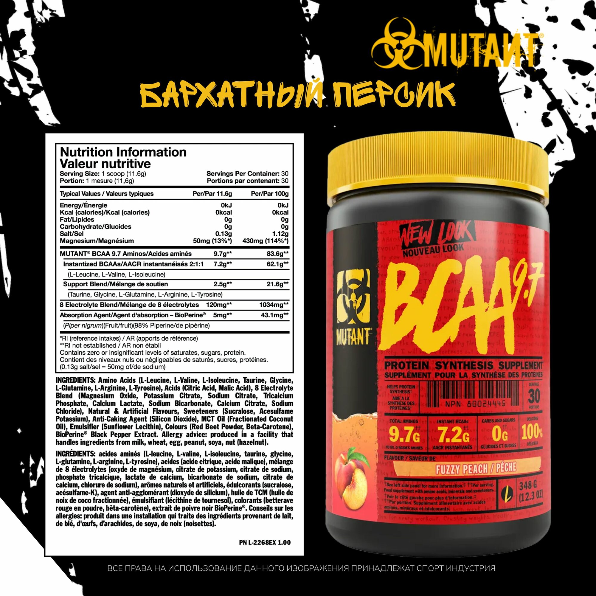 Купить Аминокислоты BCAA Mutant ВСАА 9.7 с электролитами 348 грамм, Бархатный персик с доставкой по всей России. Аминокислоты BCAA Mutant ВСАА 9.7 с электролитами 348 грамм, Бархатный персик: сравнение цен, характеристики, фото, актуальное наличие и цены.