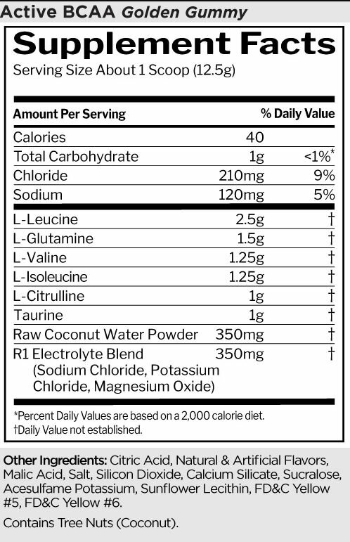 5 г BCAA† 1,5 г L-глютамина† 1 г цитруллина† 350 мг порошка кокосовой воды† Смесь электролитов 350 мг† Полная прозрачность панели Формула производительности, обогащенная аминокислотами, сочетающая в себе BCAA, глутамин, цитруллин и таурин для восстановления мышц с сырой кокосовой водой и электролитами для дополнительной поддержки гидратации.