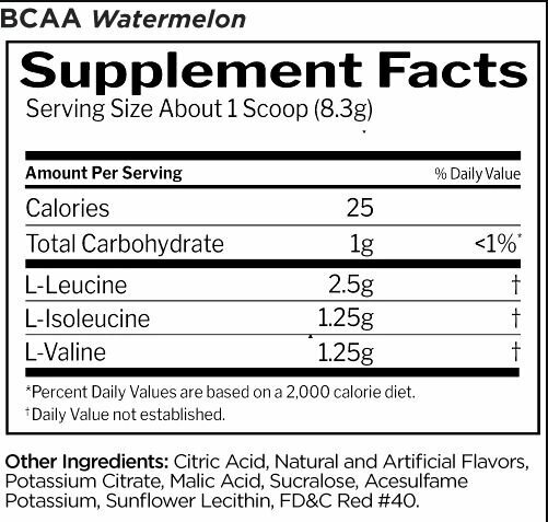 | Дополнительная информация | размер порции в г(мл): 7.2; назначение: быстрое восстановление после тяжелых тренировок, ускоренный рост мышечной ткани, а также повышений силовых показателей; положительно влияет на иммунитет, выносливость и общую работоспособность; рекомендации по применению: рекомендуется принимать бцаа непосредственно перед вашей тренировкой, а также по ее окончании; при короткой продолжительности тренировки достаточно приема бцаа по ее завершении; кроме того, рекомендуется употребление бцаа сразу же после ночного пробуждения, что будет способствовать подавлению ночного катаболизма и ускорит процесс пробуждения организма; состав: микронизированный l – лейцин, микронизированный l – изолейцин, микронизированный l – валин, ароматизаторы, антиокислители: (е330), (е332); подсластители: (е950), (е955); антиокислитель: (е322), пищевые красители: (е133), (е110) |