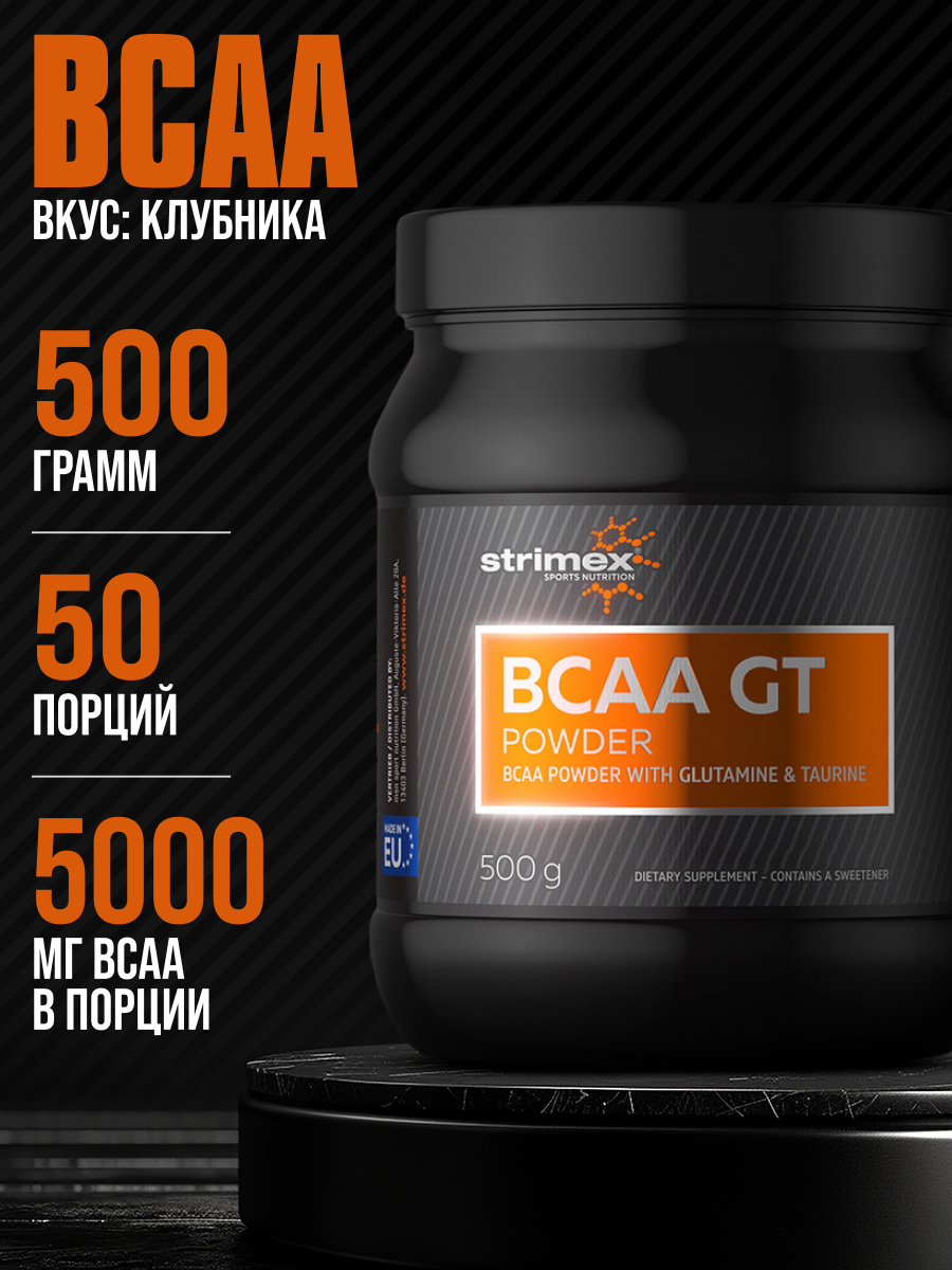 Аминокислоты Strimex BCAA GT Powder, клубника, 500 гр. + глютамин и таурин, БЦАА, Спортивное питание: сравнение цен, характеристики, фото, актуальное наличие и цены.