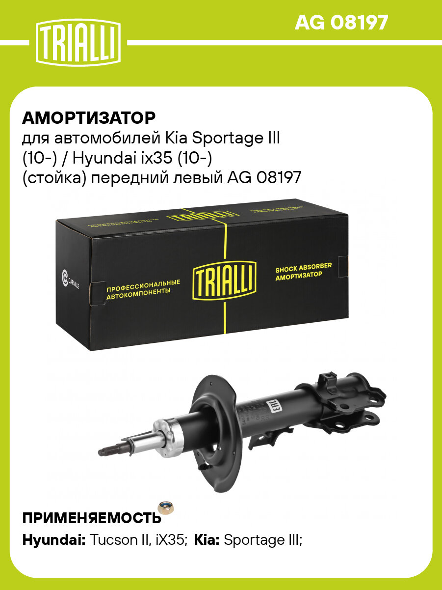 Амортизатор передний левый для Kia Sportage III (10-) / Hyundai ix35 (10-) газомасляный TRIALLI AG 08197: сравнение цен, характеристики, фото, актуальное наличие и цены.